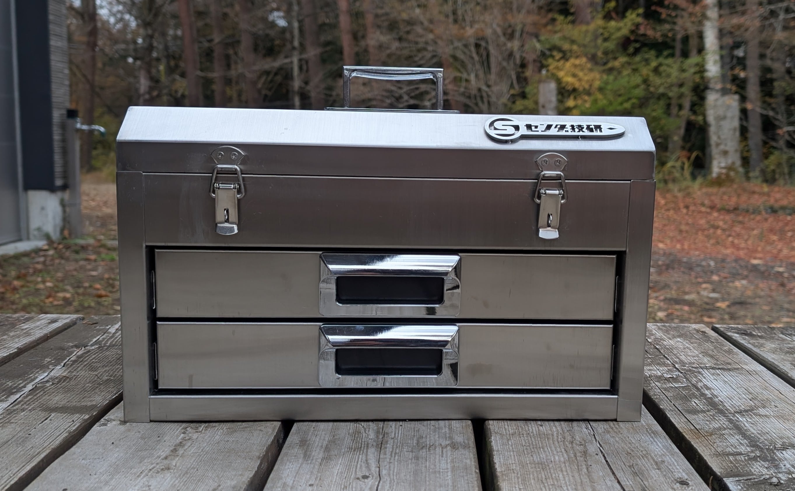 上質なステンレスヘアラインを使用したこの工具箱は、耐久性と美しさを兼ね備えています。国産ならではの高い品質は、長く愛用いただけること間違いなしです。